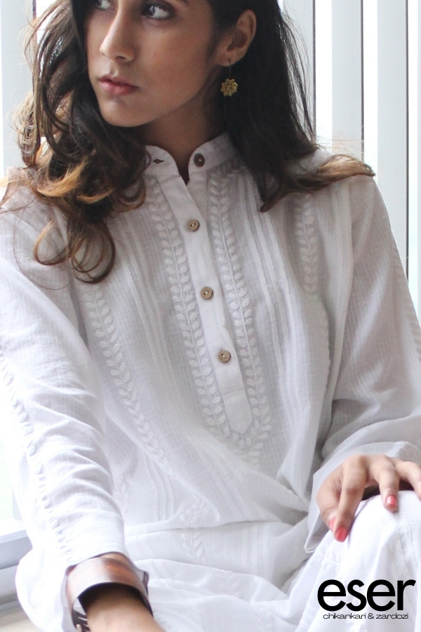 White Straight Kurta | Eser is a vision of understated elegance, drawn from Eser’s Signature collection and designed for effortless sophistication. Crafted from breathable, textured cotton fabric, this straight white kurta features a clean, streamlined silhouette with a crisp band collar and wooden buttons that add a subtle touch of rustic charm.