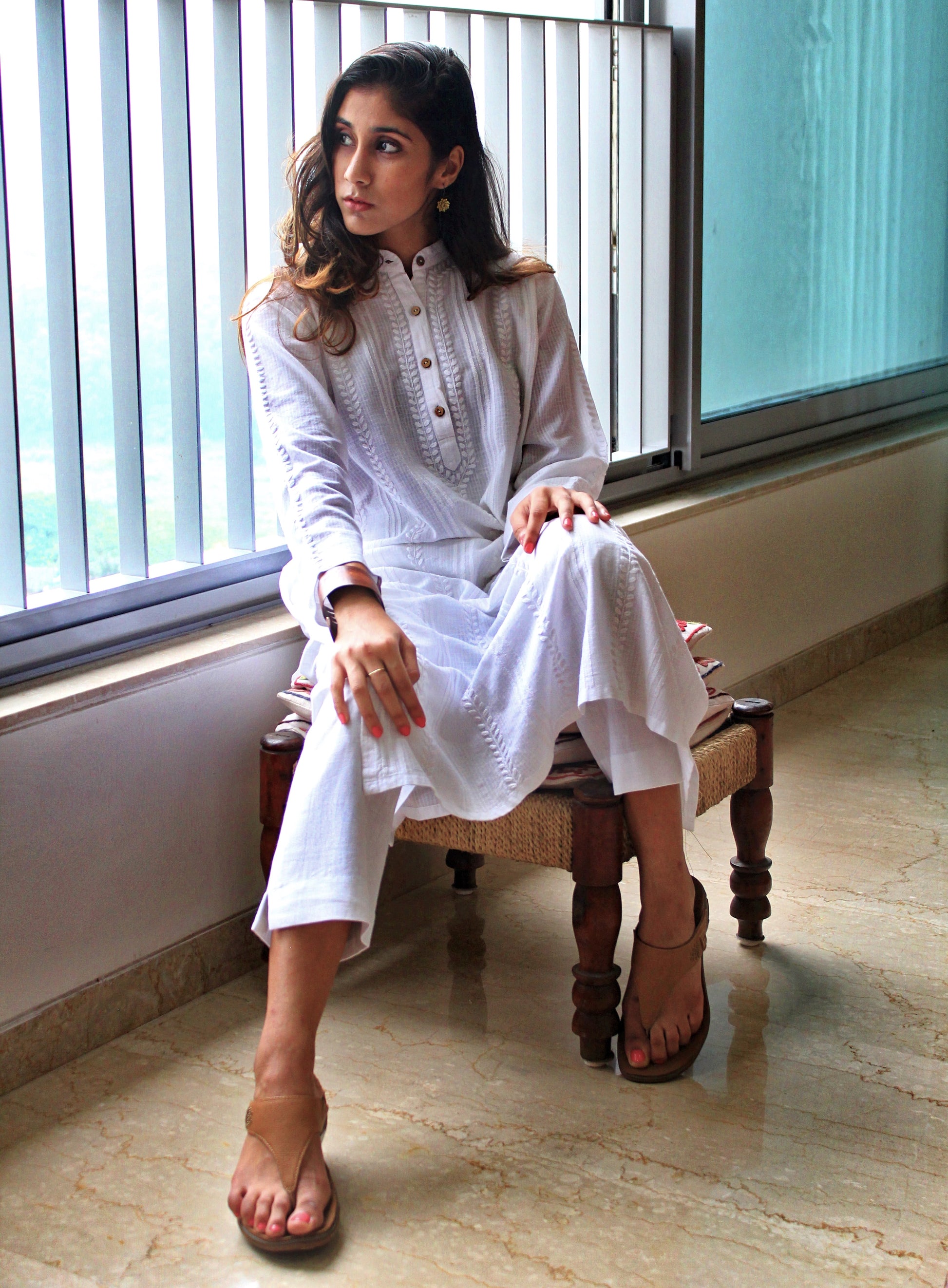 Its versatile length and clean lines make it perfect for both everyday refinement and understated occasion wear. Pair with slim white pants or palazzos for a pristine monochrome look. Add a tan or metallic kolhapuri for daytime ease, or block heels for a dressier mood.